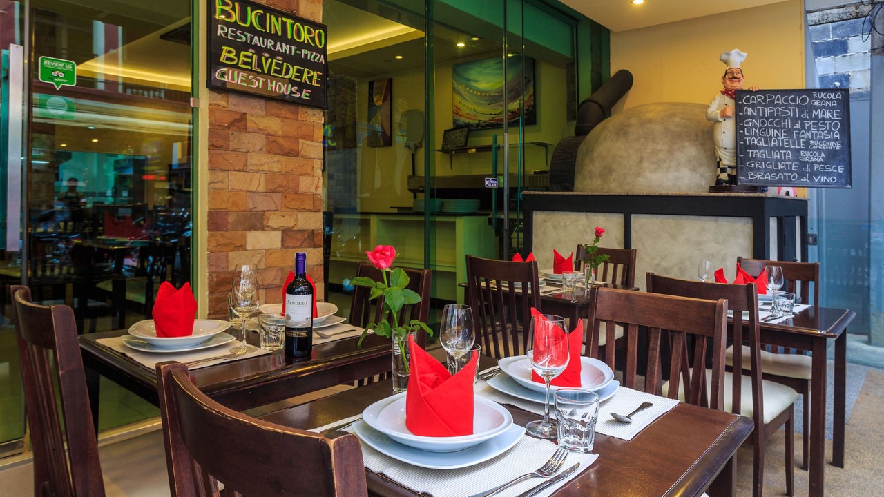 Guesthouse Belvedere is a 5-minute walk from Bangla Road, an area known for a busy nightlife. It offers comfortable rooms with air-conditioning and free Wi-Fi. This pet-friendly hotel is equipped with a 24-hour front desk and a restaurant. The property is a 10-minute walk from Patong Beach. It is 100 metres from Jungceylon Shopping Centre. Phuket International Airport is a 45-minute drive away. Fitted with tiled flooring, rooms at Guesthouse Belvedere feature a cable TV, a safety deposit box and a minibar. An en suite bathroom is included. Staff at the on-site tour desk can help guests organise sightseeing trips. A shuttle service is also available at additional charges. Bucintoro Restaurant & Pizzeria serves authentic Italian cuisine, specially prepared by an Italian chef.